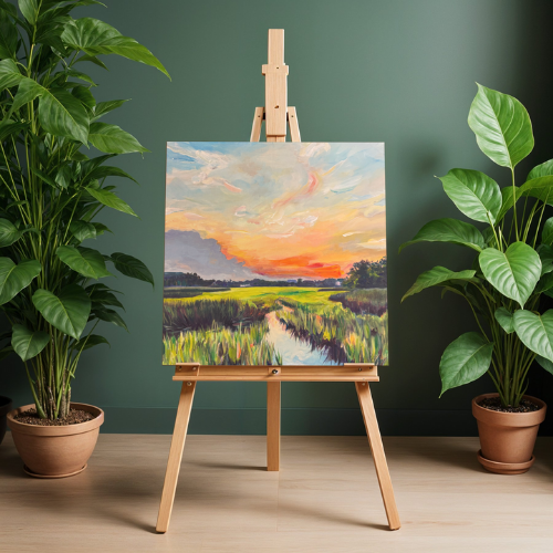 “The Lowcountry”, part of the Mountains to Sea collection is an original 16×20 acrylic painting on gallery wrapped canvas frame.
